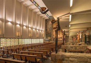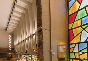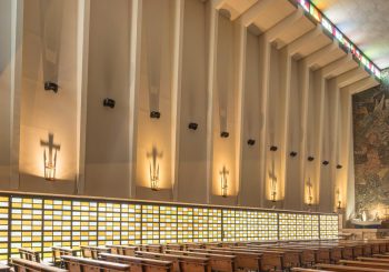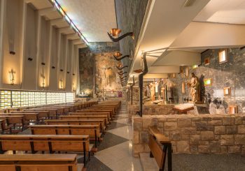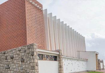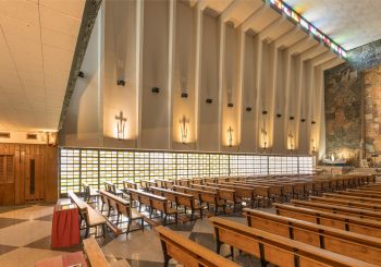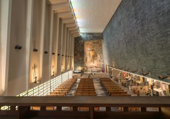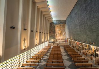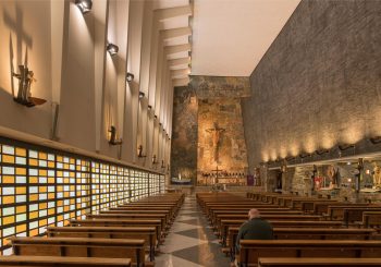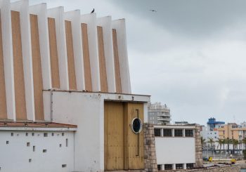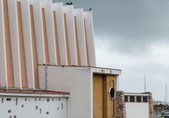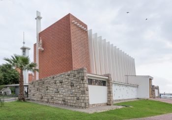 La iglesia está magníficamente situada como fondo de perspectiva de un canal portuario, marcando su torre un hito paisajístico. Sin embargo, a los ojos de un espectador común, el mayor mérito de esta obra queda oculto, pues se relaciona con su ingeniosa solución técnica, que cabe calificar de verdadero alarde y que consiste en una estructura de dos láminas plegadas autónomas, pensadas al servicio de una serie de requisitos arquitectónicos. Como nos muestra la innovadora sección, la luz puede penetrar cenitalmente desde un lateral y también a lo largo de dos franjas continuas en las bases, de diferente altura y una con capillas. Los muros testeros, a la manera del Frontón Recoletos, actúan como apoyos fundamentales y así, al eliminar soportes que producirían sombras, se crea una interesante sensación de ingravidez en una cubierta que, para aumentar su rigidez, aparece doblada y con potentes voladizos inferiores. Recuerda la experiencia de Maillart en Zurich, aunque sin el atirantado de la pasarela central. Con mayores dificultades, por su asimetría y dimensiones, el esquema de Torroja sustituye este recurso resistente por dos cables parabólicos postesados que absorben las torsiones, mientras unas costillas visibles al exterior evitan la flexión.